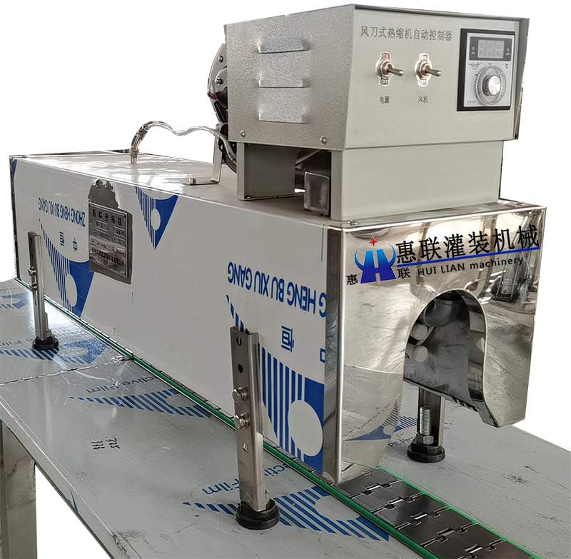 电热管式胶帽热缩机,瓶子通过电热管加热工作区,再经吹风机送风,使工作区温度均匀,为各种瓶型的胶帽热缩